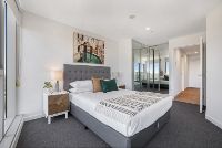 This stylish apartment is metres from restaurants, bars, cafes, Moonee Ponds Central Shopping Centre and Moonee Ponds Station. It’s also only a 25-minute train from the Melbourne CBD and a short drive from Moonee Valley Racecourse and Flemington Racecourse. The apartment has boutique furnishings in its living room and bedroom, which overlook the neighbourhood. It also has a furnished balcony and designer kitchen. Along with secure parking, the complex has a pool, sauna, gym and barbecue terrace.